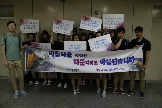 | (7월) 캠페인 보고서 1. 실시일 : 2013년 7월 26일 2. 실시 장소 : 동대문역사문화공원역 3. 주제 : 올바른 화장실 이용문화 및 내 손수건 사용하기 캠페인 4. 참가인원 : 15명 |