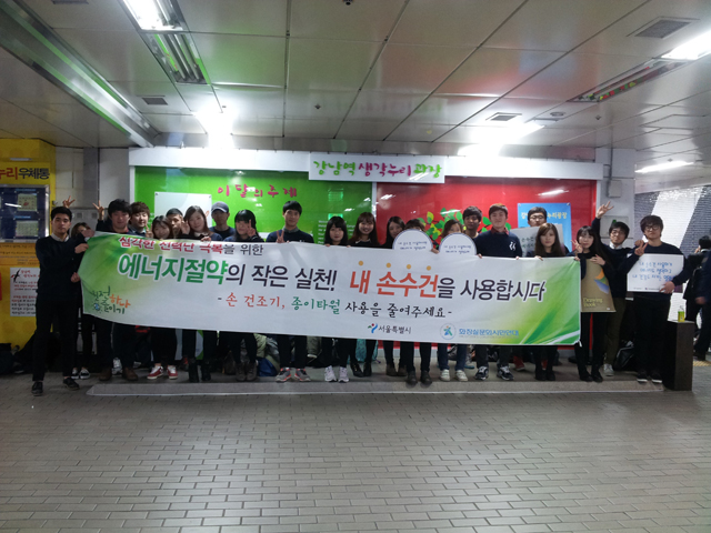 | (11월) 캠페인 보고서 1. 실시일 : 2013년 11월 22일 2. 실시 장소 : 강남역 3. 주제 : 내 손수건 사용하기 캠페인 4. 참가인원 : 25명 |