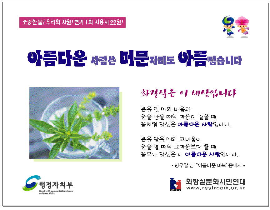 깨끗하고 쾌적한 화장실 환경 문화 운동