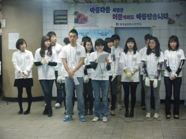 | (4월) 1차 캠페인 보고서 1. 실시일 : 2010년 4월 3일 2. 실시 장소 : 서울역 3. 주제 : 화장실 이용문화 캠페인 4. 참가인원 : 22명 |